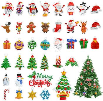 38 peças Natal Diamante Pintura Tags, DIY Diamante Artificial Pintura Etiquetas Presente Pendurado Pingente para Árvore de Natal